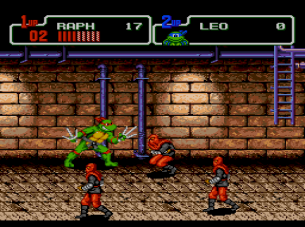 This is the first Genesis TMNT game. It is a port of the 1992 arcade game with new levels and a new story.